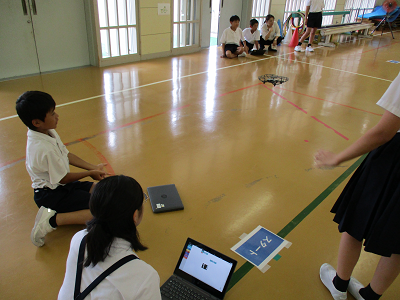 6年生では、ドローンを使った学習に取り組んでいます。どのような命令をどのような順序で組み立てると指示通りにドローンが動くのか、試行錯誤しながら学習しています。操作にも慣れてきた子どもたちは、友達と協働的に学ぶ姿も見られるようになり、デジタル力だけでなくコミュニケーション力も身についてきています。