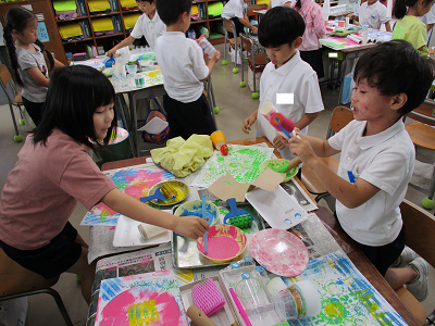 1年生は、図工で「ぺったんコロコロ」の学習をしました。