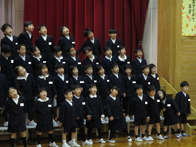 子どもたちは、緊張しながらもこれまでの練習を思い出しながら、元気いっぱいの歌声を響かせていました。