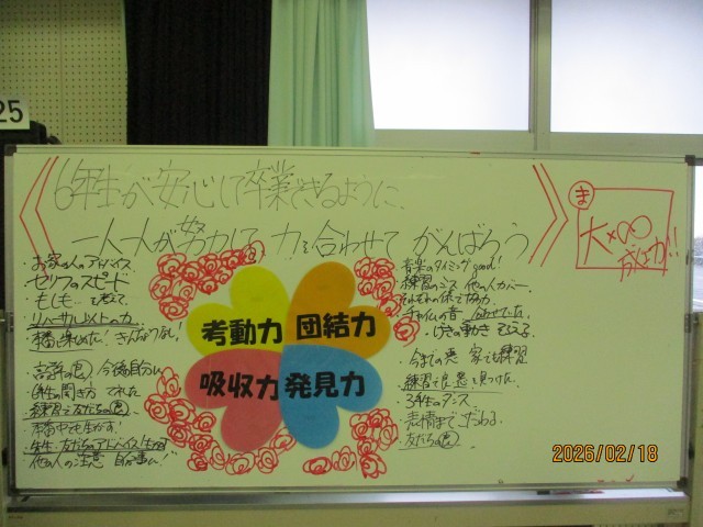 学年目標の振り返りを行った後、「考動力」「団結力」「吸収力」「発見力」の4つのキーワードをもとに振り返りを発表しました!