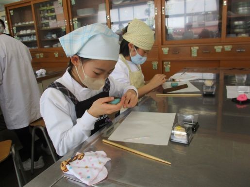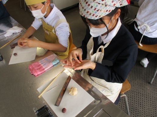なかむら生菓子店さんに来ていただき、和菓子作り体験をさせていただきました。