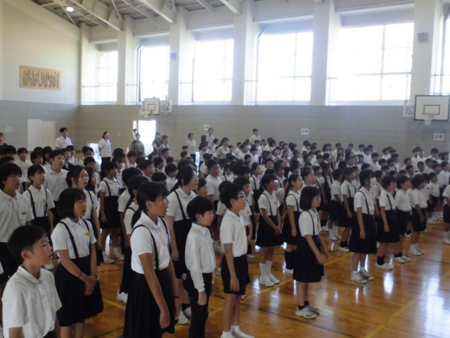 「向上」の2学期スタート! 2025.9.1 公開日 2025/09/08 更新日 2025/09/08 学校のようす 2学期初日の朝、退職校長会の皆さんがグッドマナーキャンペーンとしてあいさつ運動に来てくださいました。始業式では、1学期に学んだことをふりかえり、さらにレベルアップさせていく「向上」の2学期とすることをみんなで確認しました。ゆっくり、しっかり、一歩ずつ歩んでいこうね!
