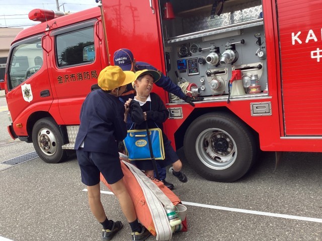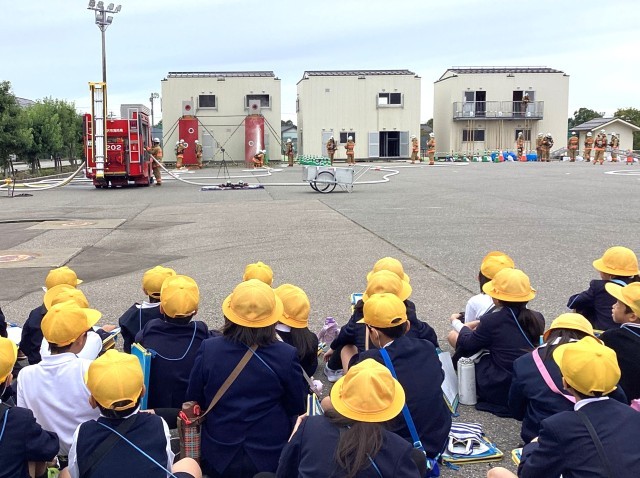 消防署見学 2025.10.22 公開日 2025/10/25 更新日 2025/10/25 学校のようす 3年生の社会科「くらしを守る」という学習で、中央消防署を見学させていただきました。訓練の様子や早着がえの様子、日本一のはしご車や通信指令室などを見聞きし、命やくらしを守るために、1分・1秒でも早く助けられるような準備をしていることがわかりました。私たちも、日頃から火事や事故を起こさないように気をつけながら生活していきたいですね。