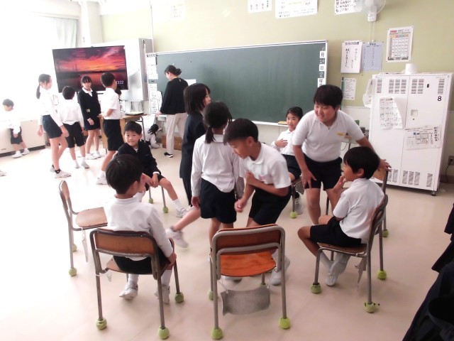 初日は、早く仲良くなれるようにと6年生が企画した縦割り遊びをしました。