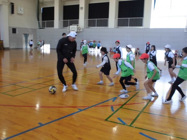 4年プロスポーツ出前講座 2025.11.4 公開日 2025/11/08 更新日 2025/11/08 学校のようす ツエーゲン金沢の指導者が4年生にサッカーを教えてくれました。最初はボールばかりに集まっていた4年生も、ボールが来そうな所へ先回りしたり、ボールがもらえるようにマークから離れたりできるようになってきました。プロに学んだサッカーのおもしろさを、これからもたくさん味わっていこうね!