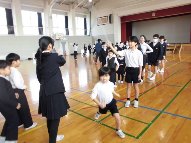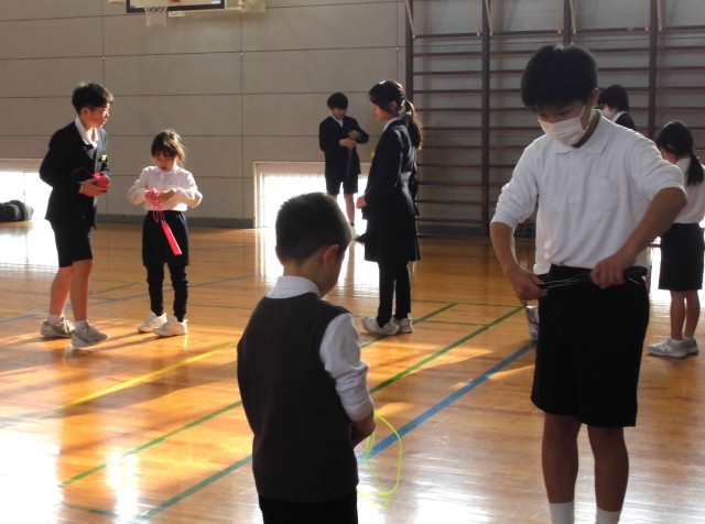 学校に戻ってきてからは、一緒に縄跳びをして楽しみました。