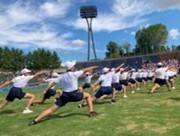 10月2日(木)県西部緑地公園陸上競技場で、およそ3800人の小学生が参加して、連合体育大会が開催されました。本校6年生も「50m走」や「若い力」、そして幅跳び、高跳び、100m走、持久走のいずれかに参加する「チャレンジ種目」に参加しました。最後は各学校代表による「学校対抗リレー」にも出場しました。