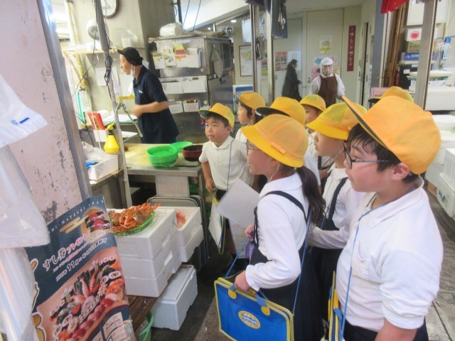 3年生は、社会科の学習「店ではたらく人」と、総合的な学習の時間の「近江町市場のヒミツをさぐれ」の学習で、マルエーmini香林坊店と近江町市場へ出かけました。子ども達を温かく迎えてくれ、インタビューにも丁寧に応えてくださったおかげで、スーパーマーケットや近江町市場ではたらく人の工夫をみつけることができ、子ども達は大満足でした。子ども達の学習にご協力いただき、本当にありがとうございました。