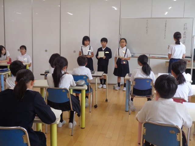 10月10日(金)、前期の最終の代表委員会が行われました。前期の活動を振り返り、後期の委員会でがんばってほしいことを確認しました。笑顔あふれる学校にしたいという思いがあふれていて、素敵な会でした。また、代表委員会は4年生以上の代表委員で行われるのですが、3年生が掃除の仕方をよりよくしようと提案にわざわざ参加してくれました。掃除に集中して学校をきれいにするために、無言清掃を徹底しようという内容でした。その日の掃除では、代表委員会に参加していた学級代表や各委員会の委員長、運営委員を中心に、実行している様子が見られました。「まずは自分から」と、すぐに行動できる中央っ子が素敵です。