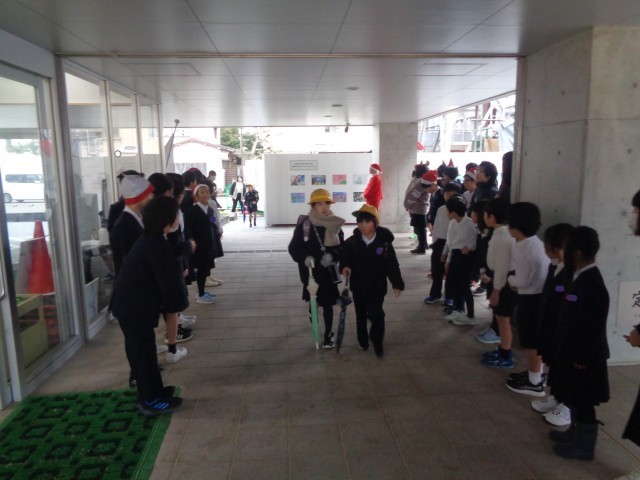 クリスマスあいさつ運動 公開日 2025/12/25 更新日 2025/12/25 学校生活の様子 12月24日(水)、運営委員会がクリスマスあいさつ運動をしました。クリスマスの帽子をかぶったりトナカイのカチューシャをつけたりして、明るい雰囲気をつくり、元気のいいあいさつをしてくれました。また、あいさつボランティアとして、たくさんの子ども達も参加してくれ、とても賑やかな朝でした。