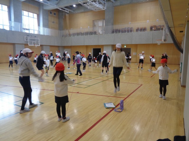 1月30日(金)、1年生は、6年生になわとびを教えてもらいました。6年生は、お手本に技を見せたり、跳び方のコツを教えたり、回数を数えてあげたりしていました。「こんな風に跳んだらいいよ。」「なわとびは、こうやって回すよ。」「○回跳べたね。」と、優しく関わる6年生がとても素敵でした。1年生は、いつも優しく接してくれる6年生のことが大好きです。