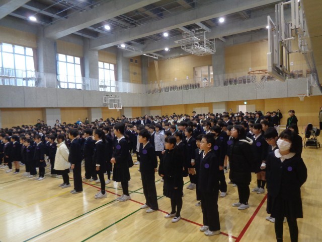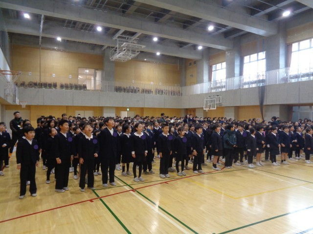 2月2日(月)、2月の全校朝会を行いました。数日前に学校メールに届いた地域の方からのメールを紹介しました。雪で転倒した高齢の男性を助けようと、通りすがりの大人に大声で助けを求めてくれた児童がいて、そのおかげで、高齢の男性を助けることができたというお話です。困っている人を助けることができる中央っ子を誇りに思うとともに、校外でも校内でも、困っている人に手を差し伸べる勇気のある行動をとることができる中央っ子がさらに増えるといいなと思いました。全校で歌った今月の歌「それもいいね」の大合唱は、とても元気よく、気持ちのいい歌声でした。