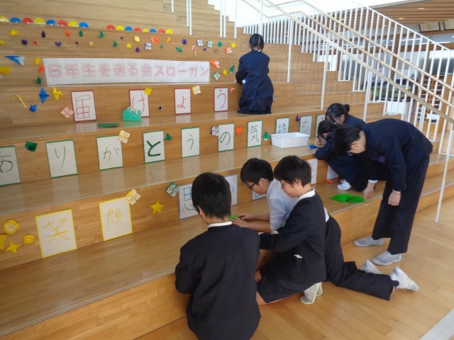 2月5日(木)の6限目、5年生は6年生を送る会の準備を進めていました。司会や幕間の相談をしたり、飾り付けをしたりと、集中して取り組んでいました。その一生懸命な姿から、「6年生のために」という気持ちが伝わってきました。6年生を送る会は、2月20日(金)です。6年生に「ありがとう」の気持ちが届くよう、これからの準備や練習もがんばってほしいです。