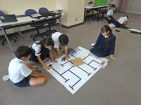 5年生は、マクィーンを使って「社会に役立つプログラミング」に挑戦しました。今回の課題は、「家からスーパーまで行き、また家に戻ってくる」というプログラムづくりです。 途中では、人が横切ったら止まる、トン...