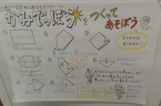 1月のおたのしみライブラリーは「紙でっぽうをつくってあそぼう」でした。