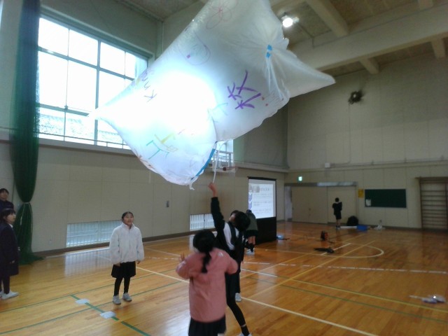 12月5日 4年生キゴ山出前授業 公開日 2025/12/17 更新日 2025/12/17 校長室より 思いをたくさん描いた大きなビニール袋。それに「あたたかい空気」を入れると・・・。寒い季節ならではの学習になりました。キゴ山の先生方ありがとうございました。