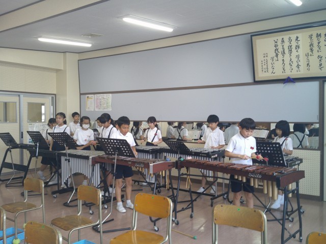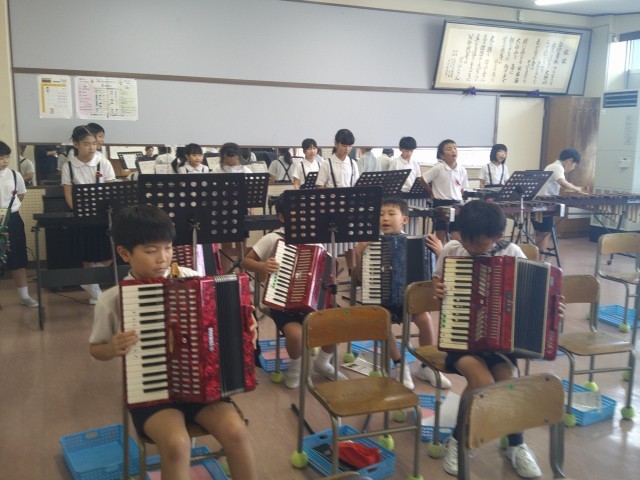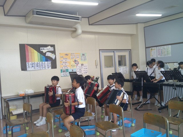 4年生が音楽の時間に練習した『いいことありそう』の歌と合奏のミニミニコンサートを披露しました。観客は担任の竹中先生と校長先生です。みんな、楽しそうにそして真剣に演奏したり、元気に歌ったりしていました。『いいことありそう』のタイトルのように、HAPPYを届けてくれるような発表でした。