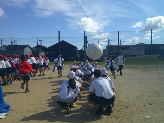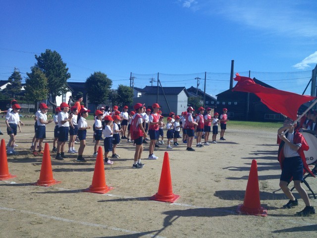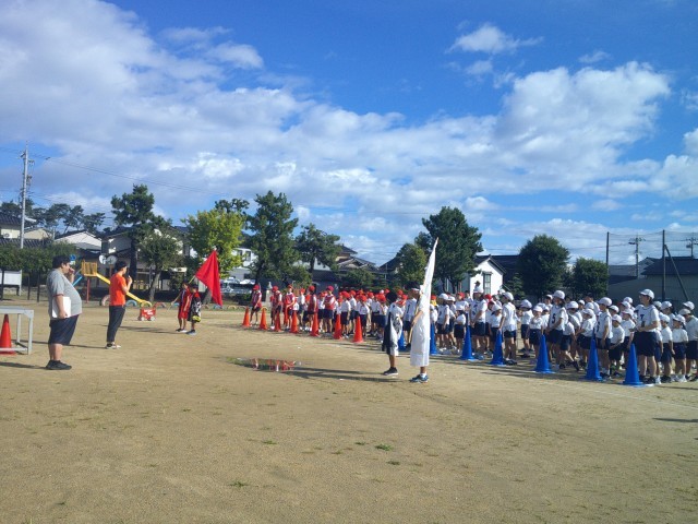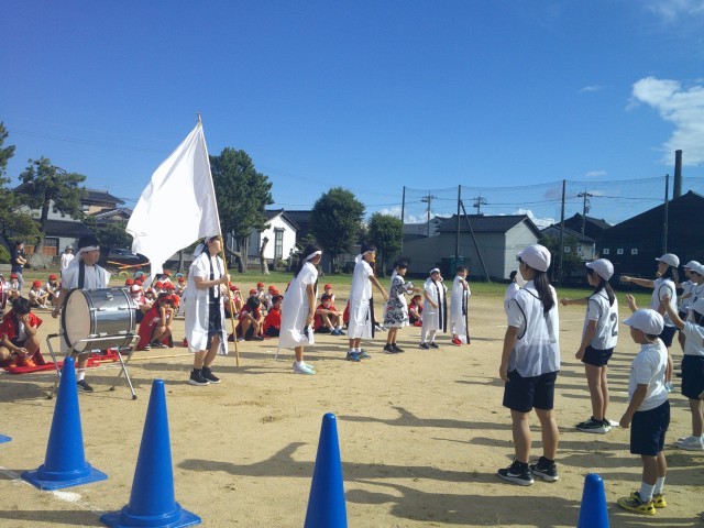 開会式・閉会式のリハーサル、応援合戦、全校競技「紅白対抗大玉送り」、「大野じょんがら」の並び方などを練習しました。