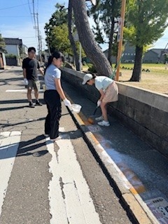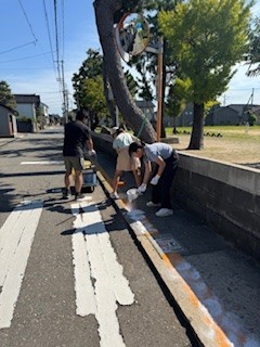 9時に作業を開始し、午前中には全ての作業を終えることができました。きれいになった黄色のラインや足形を見ると、清々しい気持ちになりました。