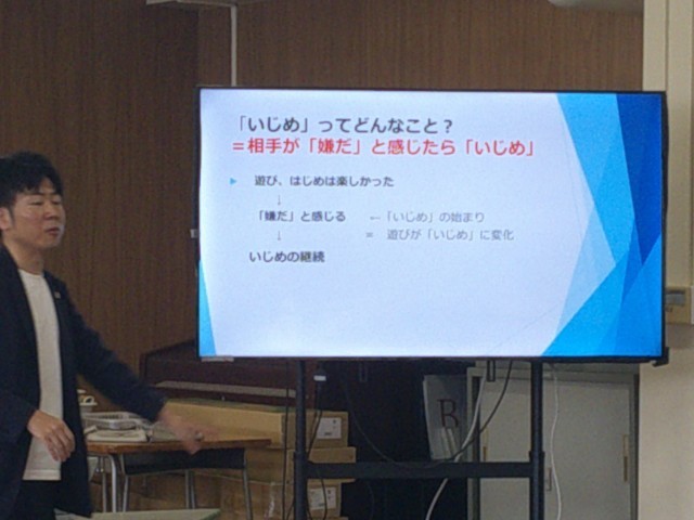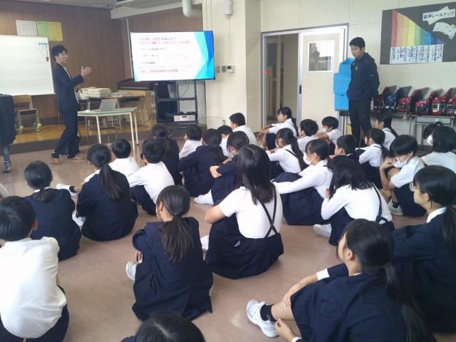 みんな真剣に話を聞き、相手の気持ちを考えることの大切さについて考えました。普段の授業とは違う視点で「いじめ」について考えるよい機会となりました。