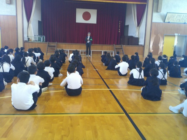 西署の方からは、110番通報をしてから警察が駆けつけるまでの5~8分間、安全を最優先にどのように行動すればよいのか、また休み時間や家に帰ってからなど、大人が近くにいない時はどうすればよいかについても教えていただきました。子どもたちも先生も、みんなで学んだ時間となりました。