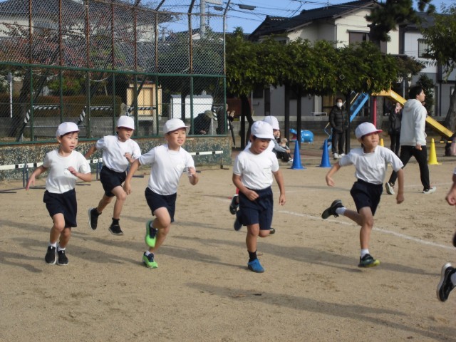 1.2年生はグランド3周(600m)、3年生は4周(800m)を走りました。たくさんのお家の方の声援を力に、みんな元気にスタートし、全員がゴールしました。