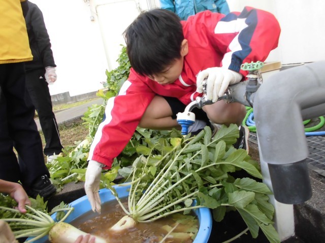 あおぞら&やすらぎ学級のみんなが、『だいこんやさん』を開店しました。大根は、学級の畑で育てました。