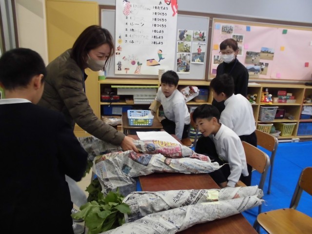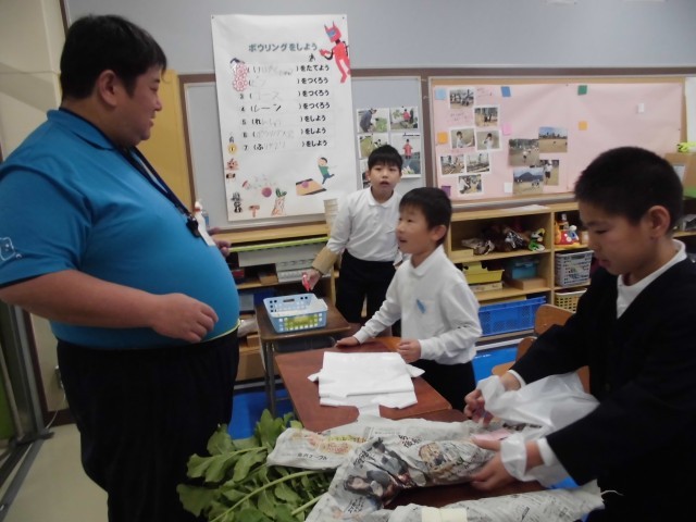 事前に先生方にチケットを配って、お店に来てもらいました。「あたたかいおでんにぴったりですよ。」「おいしいので食べてください。」など、自分たちで育てた自慢の大根を、嬉しそうに手渡していました。
