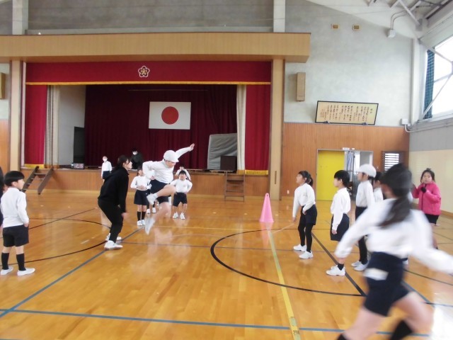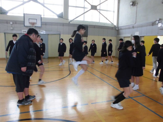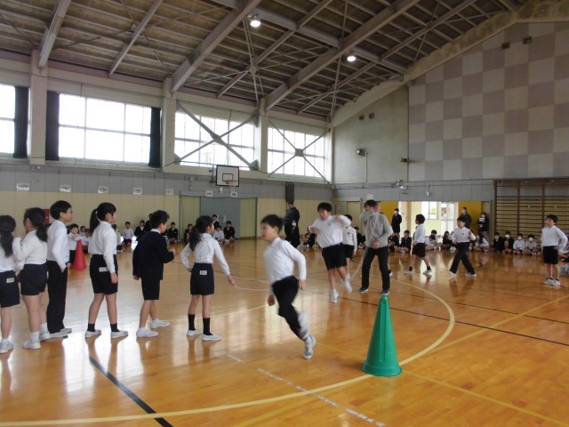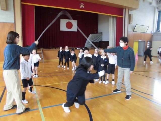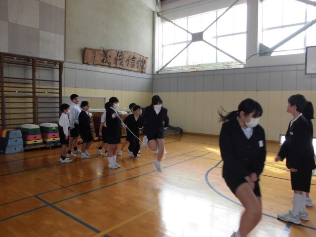 練習をたっぷりした後、スタートの合図と共に、どの学年も元気にとびはじめました。懸命にとぶ下学年、上学年はテンポよく軽々ととんでいました。さすがです!