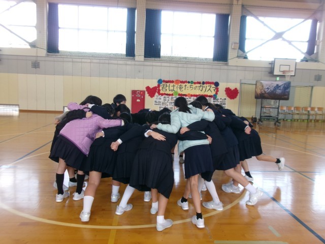 12月の後半から、少しずつ準備をすすめてきた5年生が、本番を前に円陣を組んで気合いを入れていました。