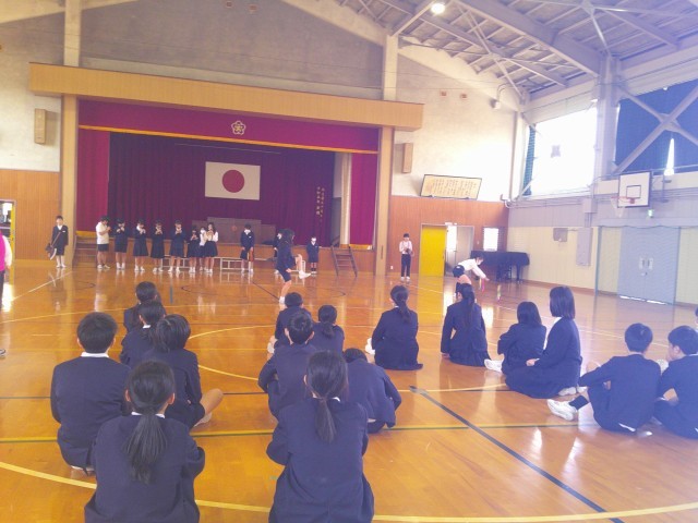 今まで上手く響かなかったホラ貝の音が体育館いっぱいに大きく響いた時、6年生から自然と拍手が起っていました。