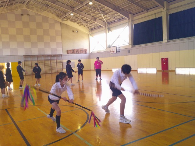 卒業を前に6年生が5年生と『悪魔祓い』の最後の練習をしました。これまで根気強く熱心に教えてくれた6年生の気持ちに応えるように、5年生も一生懸命に最後の練習に臨んでいました。最後まで、細かな部分の一つ一つを5年生に伝えようとする6年生からは、『悪魔祓い』への熱い思いが伝わってきました。