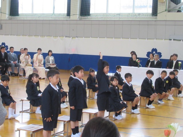 今年度も、17名のピカピカの1年生が、ご家族や地域の方々に見守られ、「おおのっ子」の仲間入りをしました。少し緊張した様子でしたが、姿勢良くお話を聞いたり、担任の先生に1人ずつ名前を呼ばれて「はい!」としっかり返事をしたりすることができました。6年生は大野町小学校を代表して、「歓迎のことば」や校歌で、あたたかく1年生を迎えてくれました。