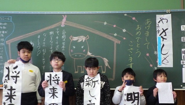 いろいろな学年の書き初めの文字があって、楽しいね。