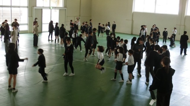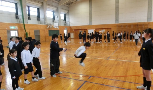 何回跳べるか競い合うのではなく、どうやったら上手に跳べるか、上級生をお手本にしたり、下級生の跳び方をほめてあげたり、