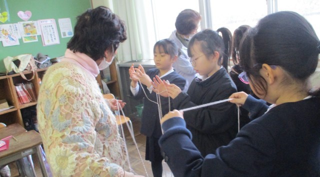 後半は地域の方と一緒にお手玉やこま、ぺった、あやとりなどの昔遊びを一緒に楽しみ、とてもすてきな時間を過ごすことができました。