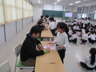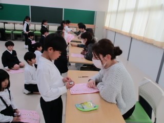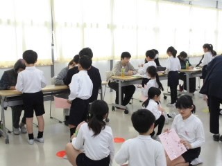 2年生は、地域のボランティアの方にも協力して頂き、算数の九九がんばりカードにチャレンジしています。チャレンジには、3×1、3×2、・・・とかける数が1ずつ増える「上り」と、逆に4×9、4×8、・・・とかける数が1ずつ減る「下り」、そして何が出てくるか分からない「ランダム」の3つがあります。2年生は自分の九九カードを持っていき、ボランティアの方の前で読み上げます。ボランティアの方に合格をもらえると、担任の先生に、カードにシールを貼ってもらえます。1の段から9の段まですべて合格すると、チャレンジのクリアになります。九九の習熟は3年生で学習する割り算にもつながっていきます。ボランティアの方にも応援してもらって、たくさんの2年生がチャレンジをクリアできるといいなと思っています。