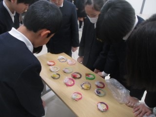 大徳小学校では、卒業式に向け6年生が水引コサージュを作成し、本番の卒業式で着用しています。そこで、19日(金)に6年生はまずは水引コサージュの色を選びました。色は全部で130種類もあり、その中から3種類を選びます。選んだ色の組み合わせによって、できあがった水引コーサジュの印象は全く違います。6年生は実際に水引を手に取り、3種類を重ね合わせながら、時間を掛けて納得の3種類を選んでいました。一生に一度の小学校の卒業式。自分で選んだ華やかな水引コサージュを身につけて、一人一人の心にのこる卒業式になったらいいなと思います。