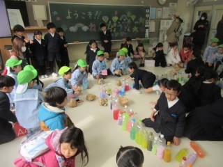 28日(水)、「大徳小学校に入学するのが楽しみだな」そんな思いを持ってもらおうと、来年度入学してくる年長さんのために、1年生が年長さんをむかえる会を開いてくれました。1年生は、それぞれの学級で魚釣りや風船バレーなど、自分たちで考えた遊びで年長さんを楽しませたり、すてきな歌をプレゼントしたりしました。年長さんはとってもうれしそうで、むかえる会は大成功でした。長い時間をかけて計画、準備したり、年長さんを楽しませようとがんばったりする姿から、1年生の大きな成長を感じました。