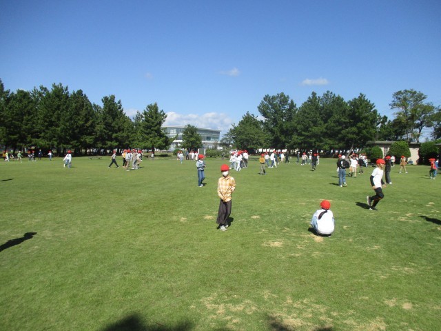 秋の遠足 公開日 2025/10/27 更新日 2025/10/24 4年生のページ 気持ちの良い青空のもと、秋の遠足に行ってきました。途中でクルーズターミナルを見学し、みんなで記念写真を撮りました。公園では鬼ごっこのレクリエーションをしたり、おいしいお弁当を食べたり、それぞれに楽しい自由時間を過ごしたりと、とても充実した時間になりました。また、大きなけがもなく、安全で楽しく思い出にのこる遠足にすることができました。