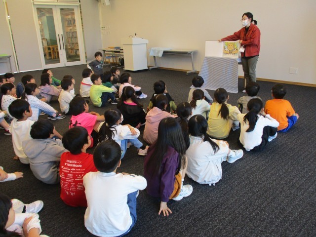 早速、10月23日(木)の遠足で、玉川子ども図書館の探検を行いました。図書館には約17万冊の本が置かれていることや、子どもから大人までみんなが使う施設としていろいろな工夫をされていることを学び、図書館のことを深く知ることができました。また、読み聞かせを聞いて、新しい本に出会ったり手遊びを教えてもらったりすることで、図書館という場所だけではなく、職員の皆さんとも仲良くなることができました。