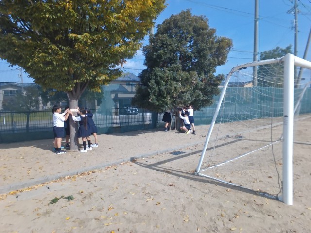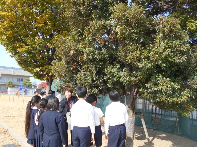 樹名板設置活動 公開日 2025/11/10 更新日 2025/11/07 4年生のページ 学校にある様々な木に、樹木名の入った看板を設置する活動を4年生全員で行いました。ただ看板を設置するだけでなく、木に関する詳しい話を専門家の方から聞くことができる時間もありました。子供たちは普段何気なく見ている木について、新しく知ることがたくさんあり、興味津々に話を聞いていました。 +1