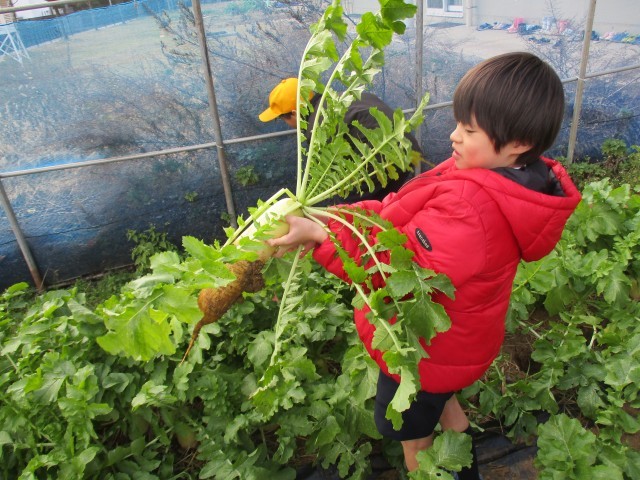 収穫時は、太さがすごいものや、長さがすごいもの、変な形になっているものなど、たくさんのことに驚きながら楽しそうにしている様子がたくさん見られました。