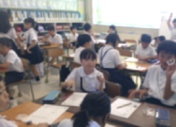 写真2は、中学年の社会の和菓子の学習の始まりの場面です。みんな校区にある和菓子店でつくった「おはぎ」をおいしそうに食べています。きっと、このおいしい和菓子は、どのようにつくったのか工夫や努力を調べる学習に展開していくんだろうと想像できます。おいしさに笑顔でした。