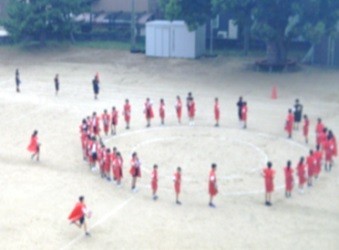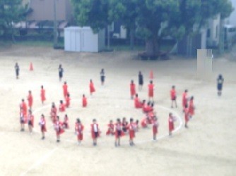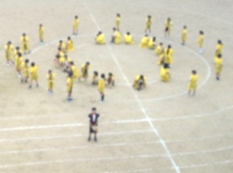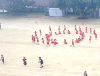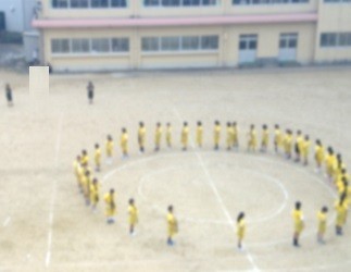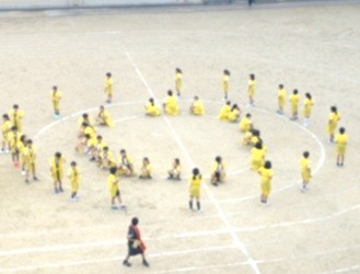 運動会練習その2です。中学年を紹介します。いずれも、青・黄・赤組で円を作ります。最初の1曲目は、総合の学習の時間で学習で教えてもらった「押野じょんがら」です。外の円の子が踊ります。次に、内側の円の子も混じり、一回り大きくなって「押野じょんがら」を踊ります。3曲目は、円の内側と外側が交代し、外側の子がダンスします。ぜひ、地域に残る大切な「押野じょんがら」を楽しんでいただければ。来年は、70周年です。少しでも盛り上げたいです。