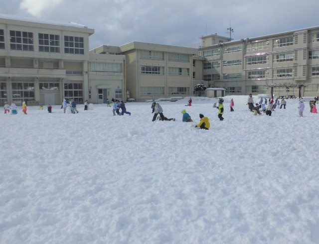 米丸山でそりをしたり、雪だるまを作ったりして楽しむことができました!