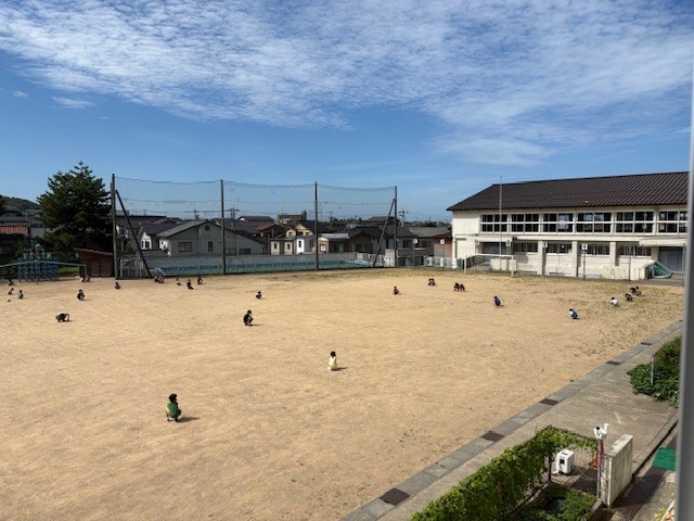 運動場で遊んでいた子供たちが、サイレンと同時に遊びをやめ