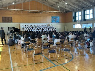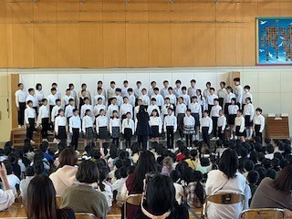 連合音楽会に参加する6年生が、練習の成果を校内で発表しました。