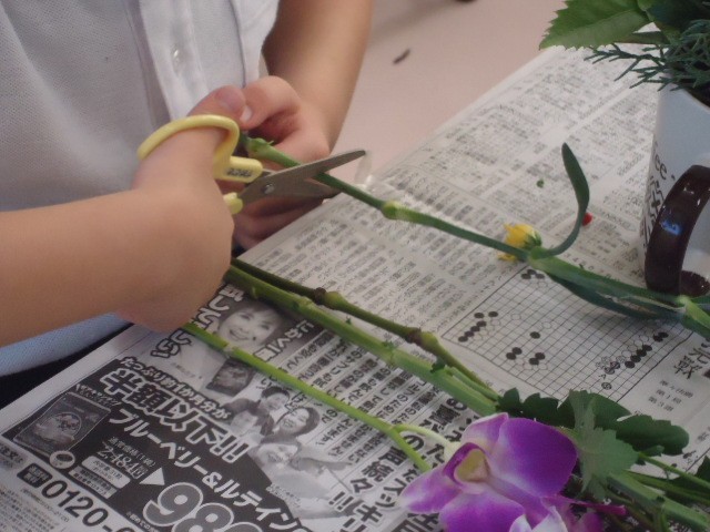 たけふきのみんなが、谷内先生に来て頂いて生け花を体験しました。お正月に向けて、素...