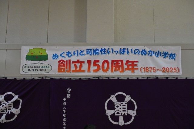 多くの来賓の方々をお迎えして、額小学校創立150周年記念式典が行われました。第1部は厳粛な雰囲気の中、子ども達のお祝いの言葉や歌、校歌が体育館中に響き渡り、とても素晴らしい会になりました。第2部では昨年度ウクレレ日本一になった額小学校出身高校生ウクレレデュオ「こごみゆい」によるウクレレコンサートが開かれました。素晴らしいテクニックが披露され拍手喝采でした。子ども達の知っている曲もレパートリーにあり、みんなノリノリで楽しんでいました。